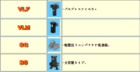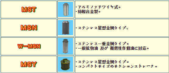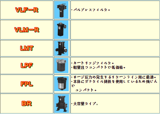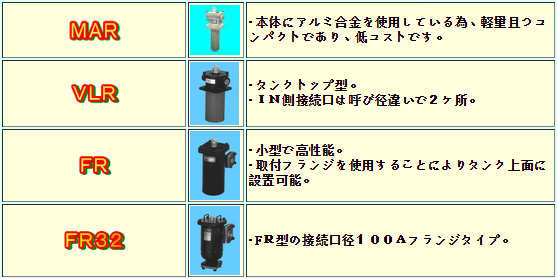 MASUDA Model: MST, MSN, W-MSN, MSY; General type:FSA, FS, FS32, VLF, VLM ,SQ, BS; Low pressure filter:VLF-R, VLM-R, LMT ,LPF, FPC, BR; High pressure filter:APL, LMT, FPM, HLF; compact filter:MAR, VLR, FR, FR32; others: OFI, MSA, MB, MSA-C, MSA-V, MSA-T, MSA-G, MSA-T, CV, OV, K, LX, U, etc.